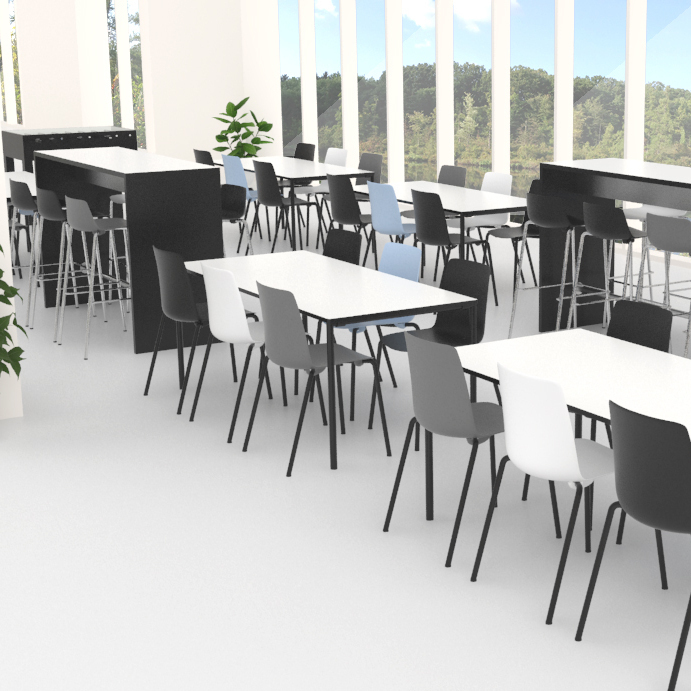 Cube Lite barbord er enkelt, slitesterkt og laget for å tåle daglig bruk over mange år. Bordplaten har en tykkelse på 30 mm.