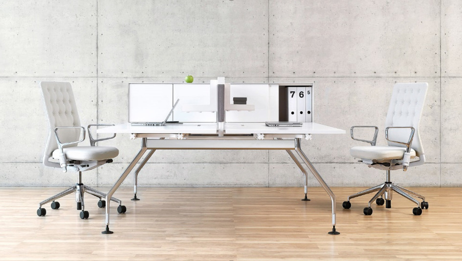 ID Trim er en del av ID Familien som består av 5 forskjellige stoler. Familien består av ID Trim, Id Soft, Id Mesh, Id Air, Id Trim L. Stolene kan bestilles uten armlener, med ring armlene, med 2D eller 3D lener. Kan også leveres med 4 fot kryss for konferanse. <br /> <br /> ID serien har muligheter for å tilpasses ulike kroppsstørrelser, ved å velge ulike setestørrelser, format på rygger, sittehøyder og funksjonalitet på armlen. Lift finnes i flere høyder. Normal, samt ekstra høy. Man kan justere setedybde uavhengig av rygghøyde. Vipp av rygg og sete. Nakkestøtte kan ettermonteres. Serien finnes også med mesh-rygg. <br /> <br /> Armlener, rygg og sete reguleres med gode tydelige mekanismer, lettglidende komponenter. Alle spaker reguleres fra sittende stilling. <br /> Sete med vippefunksjon etter ønske. <br /> <br /> Fremover tilt mekanismen har i studier utført på Institutt for Biomechanics (ETH i Zurich i Sveits), vist seg å være gunstig for å opprettholde en god sunn sittestilling som fremmer god bevegelighet i rygg, god blodgjennomstrømning i mageregionen. Mekanismen justerer automatisk stolen til vekten av brukeren. <br /> <br /> Armlener, rygg og sete kan byttes enkelt uten bruk av verktøy. <br /> <br /> Stolen tilfredsstiller EN 1335 (Ergonomisk godkjenning). Systemet er bygget opp av moduler som gir oss 8000 variasjonsmuligheter. Stolen kan fremskaffes som spesial i tekstil Oxygen, som har 100.000 MD. Som standard kommer den i tekstil Plano. Hver del av stolen kan enkelt byttes uten da stolene består av få komponenter. De svingbare kontorstolene består av inntil 95 % gjenvinnbart materiale, og 48 % av dem er produsert av resirkulert materiale. <br /> <br /> I 2008 var Vitra den første produsenten til å motta ”Blue Engel” for polstrede møbler.